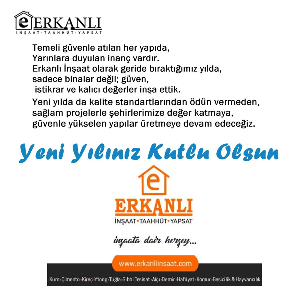 Erkanlı İnşaat olarak geride bıraktığımız yılda, sadece binalar değil; güven, istikrar ve kalıcı değerler inşa ettik.
